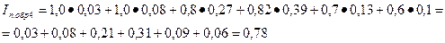 где Wij – место, на которое поставлена весомость i-го показателя у j-го эксперта; r – количество экспертов; n- количество показателей. Таким образом, весомость показателя прозрачности равна 0,03; цвета – 0,08; букета – 0,27; вкуса – 0,39; типичности – 0,13; престижность торговой марки – 0,1. Комплексный показатель конкурентоспособности по потребительским свойствам образца №2 :