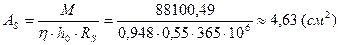 Неравенство верно, следовательно, выбранный размер поперечного сечения второстепенной балки подходит для заданных нагрузок. 4.3 Расчет продольной рабочей арматуры. 1) Расчет продольной арматуры над опорами: на участках отрицательных изгибающих моментов, т. е. у опор, где плита попадает в растянутую зону, площадь арматуры определяется как в прямоугольном сечении. - для