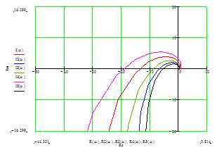 разомкнутой системы при нескольких значениях времени изодрома (рис.3.2.2). Рис.3.2.2. АФЧХ разомкнутой системы.