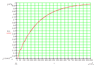 По расчетному выражению зависимости (3.1.9), значения которой приведены в табл.3.1.2, строится график аппроксимированного переходного процесса. Он изображен пунктиром на рис.3.1.1. Таблица 3.1.2. Значения аппроксимированной кривой разгона.