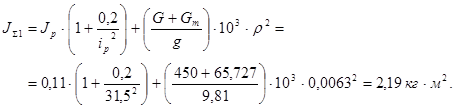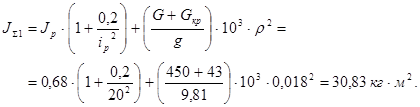 Суммарный приведенный момент инерции для нагруженного и ненагруженного механизма [6]:
