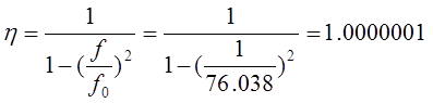 Таким образом, частота собственных колебаний платы составила 76,038(кГц). Определим коэффициент динамичности h на частоте f=1(кГц), h - показывает, во сколько раз увеличится деформация (прогиб) платы при действии синусоидальной вибрационной нагрузки f, по сравнению с деформацией, обусловленной статической нагрузкой (т. е. деформацией за счет силы тяжести элементов расположенных на плате).