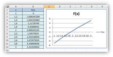 Реализация графического метода в пакете MathCAD. Таким образом, искомый корень уравнения находится на отрезке [1,8;2] 2.2 Аналитический метод