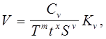 где Сv - коэффициент, учитывающий условия обработки; m, x, y - показатели степени; T - период стойкости инструмента; t - глубина резания, мм; S - подача, мм/об; Kv - обобщенный поправочный коэффициент, учитывающий изменения условий обработки по отношению к табличным