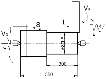 Окончательно для перехода обработки Æ80: глубина резания t=6мм, подача S=0,7 мм/об, n=250 об/мин, Vф =62,8 м/мин. 4. Основное время