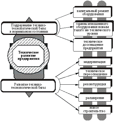 Рис. 10.3. Формы технического развития предприятия Оценку технического уровня разноотраслевых предприятий нужно проводить периодически (один раз в несколько лет) в процессе анализа и обобщения определенной системы показателей, которые характеризуют степень технического оснащения труда персонала, уровень прогрессивности применяемой технологии, технический уровень производственного оборудования, уровень механизации и автоматизации основного и вспомогательного производств. Основные этапы и планирование технического развития предприятия. В связи с определяющим влиянием технического развития на результаты хозяйственной деятельности, а также в связи с его многонаправленностью и большой сложностью важное практическое значение имеет постоянно осуществляемая и сбалансированная по всем элементам система экономического управления техническим развитием предприятия. Процесс экономического управления техническим развитием на предприятии обычно включает такие основные этапы: установление целей — определение, ранжирование, выделение приоритетов; подготовительный этап — анализ производственных условий, подготовка прогнозной информации; вариантный выбор решений — разработка, выбор критерия и оценка эффективности возможных вариантов; программирование (планирование) работ — согласование выбранных и принятых решений, их интеграция в единый комплекс мероприятий в пределах программы технического развития предприятия на ближайшую и отдаленную перспективу; сопровождение реализации программы — контроль за выполнением предусмотренных программой мер, осуществление необходимого корректирования программы. Цели и приоритеты технического развития нужно определять в соответствии с общей стратегией предприятия на том или ином этапе его функционирования. Конкретные стратегические направления технического развития предприятия могут быть связаны с решением проблем: кардинального повышения качества продукции, обеспечения ее конкурентоспособности на мировом и отечественном рынках; разработки и широкого внедрения ресурсосберегающих (прежде всего энергосберегающих) технологий; сокращения до максимально возможного уровня затрат ручного труда, улучшения его условий и безопасности; осуществления всемерной экологизации производства в соответствии с современными требованиями к охране окружающей среды и т. п. Материально-техническая база туризма является основой развития организованного туризма, так как она создает все необходимые условия для предоставления туристам полного комплекса услуг (размещение, питание, перевозка, экскурсии и т. д.)- В состав материально-технической базы туризма входят: туроператоры и турагенты, предприятия размещения, предприятия питания и торговли, автотранспортные предприятия, бюро экскурсий и т. п. По экономическим элементам объекты материально-технической базы подразделяются на основные фонды и оборотные производственные фонды (малоценные и быстроизнашивающиеся предметы). Материально-техническая база данной турфирмы включает в себя: арендованное помещение площадью 27 метров квадратных, необходимая мебель и средства вычислительной техники и обработки информации: - 6 столов, - 6 офисных стульев, - 8 стульев, - 3 тумбы, - 2 шкафа, - 1 стеллаж, - 1 диван, - 1 журнальный столик, - 6 компьютеров (S