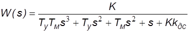– электромеханическая постоянная времени двигателя с учётом инерции нагрузки (по своим динамическим характеристикам двигатель представляет собой передаточную функцию последовательно соединённых инерционного и интегрирующего звеньев), kдс