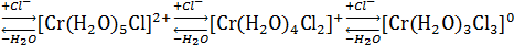 Исследования поведения гексаакваиона хрома (III) в растворах соляной кислоты во времени, позволили установить, что равновесие в системе Cr3+ -H2 O-Cl - [7] устанавливается примерно 3,5 месяца. Комплексообразование в этих растворах протекает последовательно по ступеням во времени: [Cr (H2
