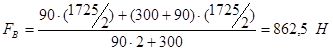 Q = S1 + S2 = 287,5 + 1437,5 = 1725 Н Из уравнения моментов найдем силы FA и FВ :