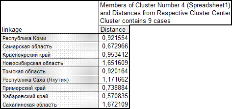 Табл. 2 Члены кластера №2 с соответствующими расстояниями