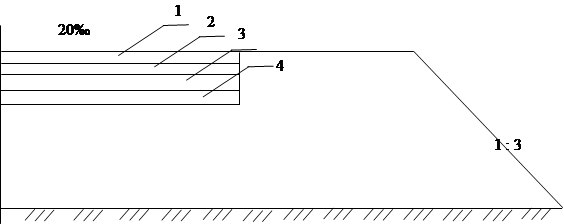 4. Дорожній одяг 4.1 Конструкція дорожнього одягу Відповідно завдання конструкція дорожнього одягу запланована така: а) підстиляючий шар з піску 20см. б) основа нижній шар – щебеневий – 18см. в) покриття по способу полегшеного просочення-6 см г) об‘єм покриття з асфальтобетонної дрібнозернистої суміші -6см.