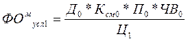 Третий условный показатель фондоотдачи рассчитывается при фактической его стоимости, фактическом количестве отработанных дней, фактическом коэффициенте сменности и при базовом уровне остальных факторов: