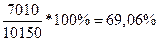 Таким образом, можно сделать вывод, что фондорентабельность повысилась в отчетном году по сравнению с предыдущим годом на 2,41 пункта и составила 69,06%. Это означает, что с каждой единицы стоимости ОПФ получено в отчетном году предприятием 69 копеек прибыли. Для определения влияния факторов на изменение фондорентабельности сделаем дополнительные расчеты: