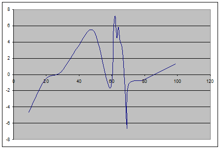 Далее проверяем правильность выбора вида уравнения регрессии. Для этого следует применить критерии серий и инверсий. Рассчитываем отклонения экспериментальных значений от соответствующих расчетных значений, рассчитанных для того же аргумента: