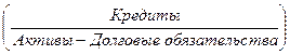 Коэффициент потерь по кредитам, отражающий долю практически невозвратных кредитов, рассчитывается как отношение резерва на убытки по кредитам к общей величине кредитных вложений. Коэффициент качества управления кредитным портфелем ( Этот коэффициент определяется как отношение объёмов различных групп ссудной задолженности, взвешенных на степень риска невозврата кредита, к общей величине кредитных вложений и рассчитывается по формуле: