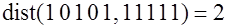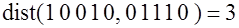 Если и кодовые векторы, то расстояние Хэмминга равно числу позиций, в которых они различаются. Может обозначаться и как – . Например, ; .