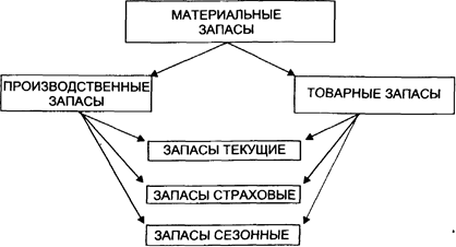 Рис. 56. Основные виды материальных запасов Охарактеризуем каждый из названных видов запасов. Запасы производственные - запасы, находящиеся на предприятиях всех отраслей сферы материального производства, предназначенные для производственного потребления. Цель создания производственных запасов — обеспечить бесперебойность производственного процесса. Примером производственных запасов могут служить запасы материалов для производства обуви на складах снабжения обувной фабрики. Запасы товарные - запасы готовой продукции у предприятий-изготовителей, а также запасы на пути следования товара от поставщика к потребителю, то есть на предприятиях оптовой, мелкооптовой и розничной торговли, в заготовительных организациях и запасы в пути. Запасы товарные подразделяются, в свою очередь, на запасы средств производства и предметов потребления. Например, запасы готового металлопроката на складах службы сбыта металлургического комбината относятся к товарным запасам средств производства (металлопрокат подготовлен к реализации, однако пустит его в производство покупатель). Примером товарного запаса предметов потребления может служить запас готовой обуви на складе готовой продукции обувной фабрики. Как уже отмечалось, и производственные, и товарные запасы делят на текущие, страховые и сезонные. Запасы текущие - основная часть производственных и товарных запасов. Они обеспечивают непрерывность производственного или торгового процесса между очередными поставками. Запасы страховые - предназначены для непрерывного обеспечения материалами или товарами производственного или торгового процесса в случае различных непредвиденных обстоятельств, например, таких как: отклонения в периодичности и величине партий поставок от предусмотренных договором; возможных задержек материалов или товаров в пути при доставке от поставщиков; непредвиденного возрастания спроса. Запасы сезонные - образуются при сезонном характере производства, потребления или транспортировки. Примером сезонного характера производства может служить производство сельскохозяйственной продукции. Сезонный характер потребления имеет потребление бензина во время уборочной страды. Сезонный характер транспортировки обусловлен, как правило, отсутствием постоянно функционирующих дорог. Управление запасами заключается в решении двух основных задач: - определение размера необходимого запаса, то есть нормы запаса; - создание системы контроля за фактическим размером запаса и своевременным его пополнением в соответствии с установленной нормой. В данном параграфе рассмотрим вопросы нормирования запасов. Нормой запаса называется расчетное минимальное количество предметов труда, * которое должно находиться у производственных или торговых предприятий для обеспечения бесперебойного снабжения производства продукции или реализации товаров.