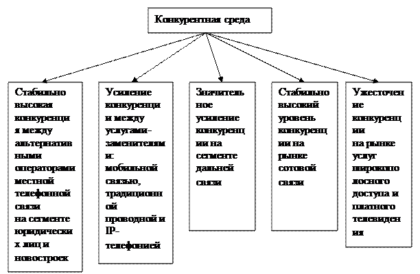 Рисунок 3 – Конкурентная среда ОАО «ВолгаТелеком» Основные показатели финансово-экономического развития отрасли связи за 3 года представлены в таблице 5. Таблица 5- Основные показатели развития отрасли за 3 года