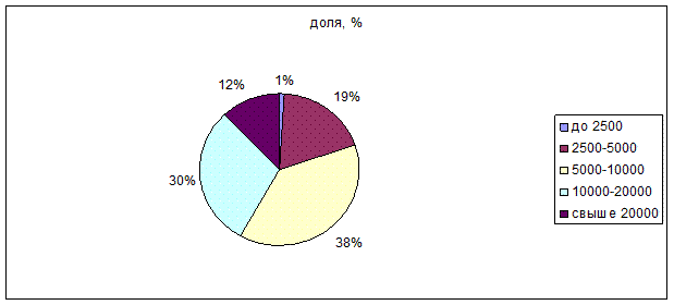 Рисунок 6 – Диаграмма финансовых возможностей респондентов Из данной диаграммы видно, что 38 % респондентов имеют ежемесячный доход на одного члена семьи от 5000-10000 рублей, а 1 % опрошенных имеют доход до 2500 рублей. В четвертом вопросе указание социального статуса помогает нам проанализировать зависимость покупок услуг респондента от его социального положения в обществе.