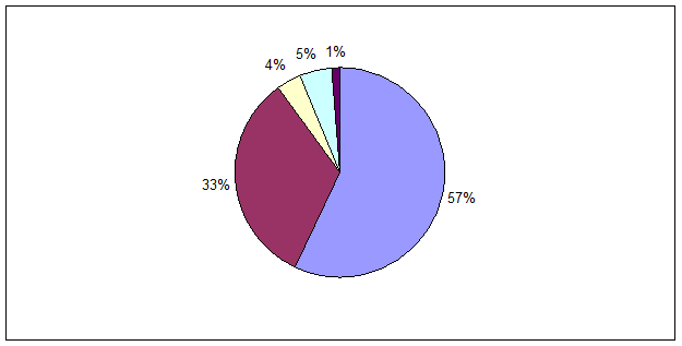 Рисунок 8 – Диаграмма предпочтений в выборе услуг На данной диаграмме видно, что опрошенные больше пользуются услугами фиксированной связи – 57 %, услугами Интернет - 33%, наименьший процент достается радиовещанию – 1 %. Почти одинаковые доли процентов людей, которые пользуются кабельным телевидением и сотовой связью. С помощью шестого вопроса мы выяснили удовлетворенность респондентов ассортиментным рядом услуг компании ВолгаТелеком в городе Оренбурге. Мнения респондентов по этому вопросу координально разошлись. 97 % опрошенных указали, что абсолютно удовлетворены ассортиментом услуг компании, и всего 3 % ответили отрицательно. Седьмой вопрос показывает нам, какую максимальную цену готовы заплатить респонденты за услуги, представленные в перечне вариантов ответов. Опрос показал, что за фиксированную связь в среднем готовы заплатить около 350 рублей, за услуги Интернет в зависимости от скорости подключения от 300 до 70 рублей, за кабельное – в среднем 150 рублей, за сотовую связь ежемесячно от 250 до 400 рублей. Восьмой вопрос дает нам понять, чем руководствовались потребители, выбирая того или иного поставщика телекоммуникационных услуг. Для выявления оценочных критериев потребителям предлагалось ответить на вопрос: «Чем Вы руководствуетесь, решая, в какую телекоммуникационную компанию обратиться?» В результате обработки полученных данных за базовые оценочные критерии были взяты: скорость доступа, компетентность обслуживающего персонала, предоставление качественных услуг, бонусы, цена, спектр услуг, опыт работы фирмы, реклама, удовлетворение от покупки спектр услуг. Согласно исследованию, все респонденты использовали практически одинаковые критерии для оценки телекоммуникационных фирм, однако они по-разному взвешивали измерения, формируя свои суждения (таблица 3). Легко убедиться, что все респонденты на первое место среди предъявляемых требований поставили скорость доступа и качество услуг. 89,9% на первое место поставили компетентность персонала. Для 73,1% очень важным было удовлетворение от покупки (т.е. от получаемых услуг). Лишь 1,7% общего числа опрошенных поставили на первое место объем и качество рекламы. Таблица 7 - Важность различных факторов маркетинга для клиентов телекоммуникационной компании «ВолгаТелеком»