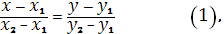 подставив поочередно в формулу (1) попарно координаты точек А и В , В и С , А и С . Уравнение прямой, проходящей через точки А (1, 7) и В (-3, -1):