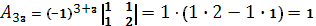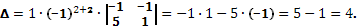 Такой прием называется сведением определителя более высокого порядка к определителю более низкого порядка. Во второй строке последнего определителя все элементы строки, кроме элемента первого столбца, равны нулю. Поэтому удобно разложить определитель матрицы по элементам второй строки. В результате получим следующий результат.