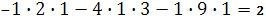 В новом определителе третьего порядка во второй строке только один элемент не равен нулю, поэтому разложим этот определитель по элементам второй строки. Получим следующий результат: