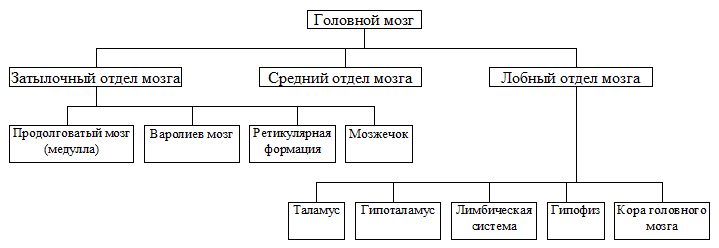 Задний отдел головного мозга включает все структуры, локализованные в задней части мозга. Средний отдел расположен в средней части мозга, а фронтальный отдел включает структуры, локализованные в передней части мозга.