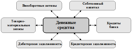 2.1 Основные теоретические положения по учету и отчетности о движении денежных средств Для ведения производственной деятельности каждому предприятию необходимо иметь в необходимых размерах оборотные средства, т.е. средства, которые обслуживают процесс производства продукции, полностью потребляются и восстанавливаются из выручки после каждого цикла. В составе оборотных средств уникальное место занимают денежные средства. Денежные средства необходимы для приобретения различных производственных запасов, оплаты труда и других хозяйственных расходов, платежей финансовым органам, банкам и прочим учреждениям. В любом хозяйстве оборотные средства совершают постоянный кругооборот: из денежной формы они переходят в товарную, из товарной - в производственную, затем опять в товарную и денежную. Схематически процесс кругооборота в хозяйстве можно отобразить следующей формулой: