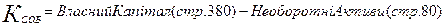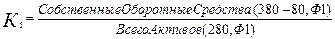Нормативне значення коефіцієнта поточної платоспроможності повинне бути більше 1. У цьому випадку це значення має велике відхилення від нормативного і носить негативний характер, як наприкінці 2006 року (-21391), так і наприкінці 2007 року (-31474). Коефіцієнт забезпечення власними засобами (критична платоспроможність) :
