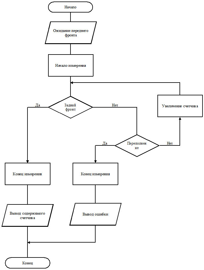 Рисунок 11. Временные диаграммы работы устройства 3. ЗаключениеПри выполнении данной курсовой работы были проведены расчет и построение узлов и комбинационных схем. Учитывались основные параметры влияющие на работу цифрового устройства. Был произведен синтез структурной, функциональной и электрической принципиальной схем заданного устройства, выбраны и обоснованы критерии подбора интегральных микросхем, проведена их сравнительная оценка. Список ЛИТЕРАТУРЫ1. Методические указания к курсовой работе по дисциплине «Цифровая схемотехника» на тему «Проектирование цифрового устройства». 2. Шило В.Л. Популярные цифровые микросхемы: справочник, - Москва; металлургия, 1988,-352 с. 3. Орнадский П.П. Автоматические измерения и приборы. - К.; Техника,1990 - 448с. 4. Цифровые и аналоговые интегральные микросхемы: Справочник / С.В.Якубовский, Л.И.Нильсон, В.И.Кулешова и др./ Под ред. С.В.Якубовского.-М.: Радио и связь, 1990.-496с. ПРИЛОЖЕНИЕ 1. Алгоритм работы устройства
