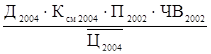= Третий условный показатель рассчитывается при его структуре за 2004 год, количестве отработанных дней, коэффициенте сменности за 2004 год и остальных показателях за 2002 год: ФОм