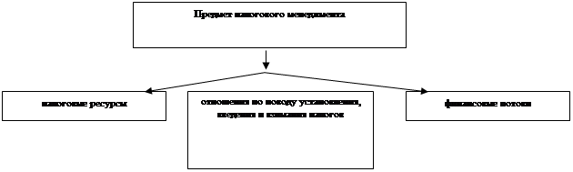 Рисунок 1 - Структурные элементы системы корпоративного налогового менеджмента В отношении каждого из вышеприведенных элементов системы корпоративного налогового менеджмента характеризуется его содержание, предмет, этапы, цели и задачи. Взаимосвязь системных элементов выражается в следующем: выполнение функции контроля возвращает нас к началу цикла управления налогами организации - к планированию. То есть процесс управления налогами заключается в последовательно сменяющих друг друга циклах управленческих действий: планирование - регулирование - контроль - планирование… и т.д. [14]. Предметом налогового менеджмента являются налоговая политика, определяющая уровень налогообложения, и ее практическая реализация. Основным объектом налогового менеджмента являются хозяйствующие субъекты-налогоплательщики. Информационная база налогового менеджмента формируется в системе финансового, налогового и управленческого учета. Это, в частности, обусловливает тесную взаимосвязь налогового менеджмента с такими подсистемами управления, как финансовый менеджмент, бухгалтерский учет, управление затратами [18]. Как научное направление налоговый менеджмент требует раскрытия своих концептуальных основ, как область практической деятельности он основывается на конкретных приемах и способах принятия решений по управлению налогообложением. Этими двумя взаимосвязанными установками определяется многозначность налогового менеджмента, его методологические основания. Рассматриваемое научное направление характеризуется своим предметом и методом. При их трактовке должна быть принята во внимание двойственная природа налога, т.е. налог последовательно раскрывается как правовая и экономико-стоимостная категория. С учетом этого предметом налогового менеджмента являются (рисунок 2).