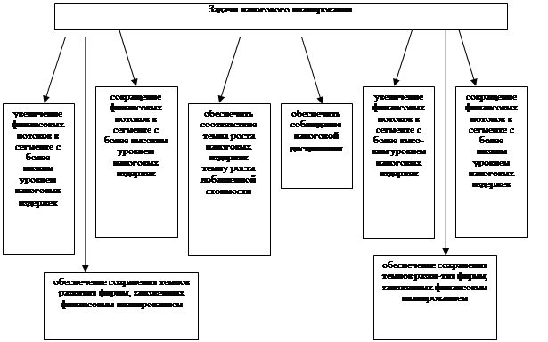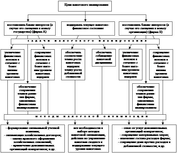 Рисунок 5 - Варианты постановки задач в зависимости от целей налогового планирования После постановки задач налогового планирования, в соответствии с логикой построения этапов данного системного звена корпоративного налогового менеджмента, осуществляется выбор способов решения поставленных задач, то есть методов оптимизации налоговых платежей. При выборе методов налоговой оптимизации предложено исходить из цели и задач налогового планирования, стоящих перед конкретным хозяйствующим субъектом, что схематично представлено на рисунке 6.