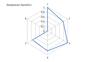 К1 – потенциал маркетинговых исследований; К2 – потенциал маркетинговой информационной системы; К3 – потенциал сегментации (выбора целевого рынка); К4 – потенциал товарной политики предприятия; К5 – потенциал тарифной политики; К6 – потенциал сбытовой политики предприятия; К7 –потенциал рекламной деятельности предприятия; К8 – потенциал стимулирования сбыта продукции; К9 – потенциал формирования общественного мнения (PR деятельности). Для Финнэйр: 0,0983*(1*1+1*1+1*1+1*1+1*1)*(20700000-186500)/21328000=4,7 Для Американ Эрлайнз 0,0983*(2*1+1*1+1*1+1*1+2*1)*(1468000000-53748900)/627630000=15,5 Для Трансаэро 0,0983*(1*1+1*1+1*1+1*2+0*1)*(30686500-240640)/30056768=4,9