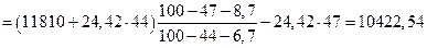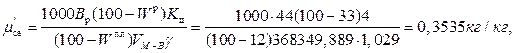 где Nтл – мощность, потребляемая М-В на размол и пневмотранспорт, Вр =44т/ч – расчётная производительность мельницы. Объёмное количество влажного сушильного агента в конце установки: