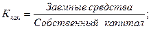 5. Коэффициент капитализации (плечо финансового рычага) (Kкап) показывает, сколько заемных средств организация привлекла на 1 рубль вложенных в активы собственных средств, нормальное ограничение не выше 1,5: