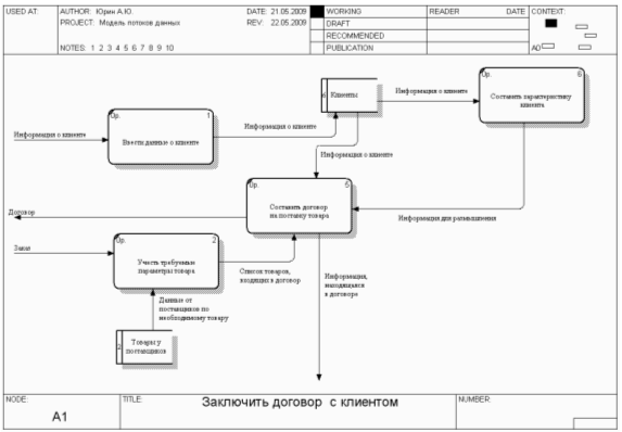 2.1 Структурная функциональная модель в IDEF0 Диаграммы модели в стандарте IDEF0, IDEF3 показаны на рис. 2 - 10. Они отображают производимые объектом действия и связи между этими действиями. SADT-модель представляет систему в виде контекстной диаграммы. 2.2 Функциональная модель в виде DFDДиаграммы функциональной модели в виде иерархии потоков данных (DFD)показаны на рис. 11-13. Модель потоков данных, в отличие от SADT-модели, ориентирована на раскрытие особенностей документооборота.