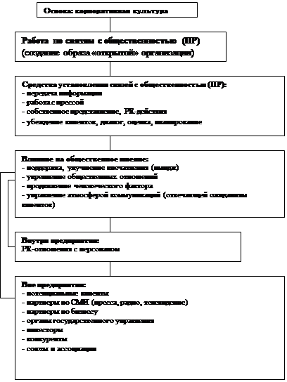 Важно уметь различать PR и рекламу. Когда речь идет о печатании проспектов, вывешивании плакатов и помещении заметок в прессе, во всех этих случаях говорится о рекламных мероприятиях. Информация рекламной службы объективно и профессионально подобранная, должна косвенно способствовать увеличению загрузки и прибыли. Мероприятия PR призваны, с одной стороны, повысить интерес клиента к предложению предприятия, а с другой - за счет обратной связи с клиентом привести предложение услуг в соответствие с имеющимся спросом. Таким образом, зачастую смыслом и целью всех мероприятий по PR на практике остаются следующие: улучшение репутации и повышение популярности предприятия. Это служит в основном целям предприятия, то есть получению дополнительных клиентов из числа «прохожих», и не всегда совпадает в широком смысле с задачами открытой рекламы. На этом основании можно сделать вывод, что PR более тесно связана с выбором средств коммуникации, а не с их печатным содержанием. PR предполагает, что теперь на смену классическим методам рекламы будут применяться новые способы продвижения имиджа предприятия и публицистики. Постоянно увеличивающаяся конкуренция в данном бизнесе заставляет особо заботится о потребительских предпочтениях в области услуг. Но не все руководители автоцентров это понимают. Специально нацеленная политика PR улучшает связи с клиентами и помогает предприятию профилировать свое предложение. Довольно актуален в настоящее время вопрос о том, является ли PR частью маркетинга или наоборот. PR принадлежит к инструментам маркетинга и координируется с помощью методов корпоративной культуры, не выходя за рамки ведущей стратегии. Корпоративная культура согласуется по своим функциям со всеми коммуникативными средствами. Работу автоцентра необходимо постоянно поддерживать независимо от его величины. Основные задачи рекламной работы лежат в следующих областях: формирование информационной составляющей работа с прессой PR- акции диалоги, оценки, планирование. «PR — это не только отношения с прессой» и «Журналисты не являются внештатными помощниками автоцентров» - оба эти высказывания говорят о проблемах во взаимоотношениях с представителями СМИ. Здесь полезно будет привести несколько правил и указаний по работе с прессой: - познакомьтесь с редакторами, журналистами и репортерами тех изданий, читатели которых входят в вашу целевую группу; - познакомьтесь с редакторами и ответственными лицами местных радио- и телестанций (интервью, интересные истории, персоналии); - исходите из того, что СМИ интересуют новости, а не рекламные тексты о вашем предприятии; - подумайте, какие темы, рассказы и публикации лучше всего подходят для того или иного круга читателей; - в контактах с редакциями и прессой акцентируйте внимание на то, что соответствует вашим общим интересам; - следите за тем, чтобы под иллюстративным материалом (фотография о мероприятии) помещался правильный текст; - не старайтесь скрыть “плохие новости”, правильно подготовленная подробная информация помогает бороться со слухами; - используйте для пресс-информации фирменный конверт вашего предприятия, сообщайте контактные телефоны, фамилии ответственных лиц для возможной обратной связи; - обращайте особое внимание на то, чтобы ваша информация была предметной, актуальн