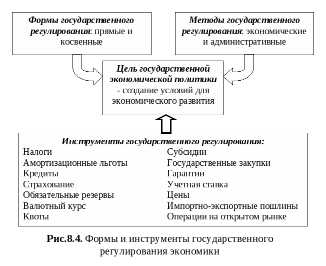 Денежно-кредитное регулирование включает изменение учетной ставки процента, операции на открытом рынке, изменение нормы обязательных резервов. С помощью этих инструментов государство воздействует на изменение спроса и предложения. Рост процентных ставок ужесточает условия кредита, что ведет к ограничению совокупного спроса. В качестве цели единой государственной денежно-кредитной политики России сегодня выступает снижение инфляции. Набор инструментов денежно-кредитной политики и система их применения должны обеспечивать возможность не только регулировать уровень свободных денежных средств банковской системы (сглаживать краткосрочные конъюнктурные колебания ликвидности), но и формировать совокупное предложение денег на долгосрочную перспективу с учетом ожидаемых диспропорций между спросом и предложением денег. Поэтому ЦБ должен располагать инструментами как для абсорбирования избыточной ликвидности, так и для предоставления денежных средств кредитным организациям. В целях связывания ликвидности ЦБ может регулярно проводить аукционы по продаже облигаций федерального займа с обязательством обратного выкупа, а также депозитные аукционы по привлечению средств кредитных организаций на срок от двух недель до трех месяцев. Решению этой задачи служат и операции по прямой продаже государственных облигаций Банком России из собственного портфеля. В дополнение к рыночным инструментам стерилизации используются окна постоянного доступа для размещения свободных средств кредитных организаций в депозиты в ЦБ на установленных стандартных условиях по фиксированной процентной ставке. В целях сглаживания конъюнктурных колебаний уровня ликвидности ЦБ развивает различные виды операций по предоставлению ликвидности. В частности, активно используется практика ломбардных аукционов, кредитов «овернайт» и внутридневных кредитов. В зависимости от степени дисбаланса между спросом на деньги и денежным предложением государство может выбирать из набора инструментов те, использование которых приведет либо к фундаментальной, либо «мягкой» корректировке денежной базы. При различных сценариях развития макроэкономической ситуации состав инструментов может быть расширен в соответствии с потребностями экономики. В целях предоставления банкам дополнительного механизма управления ликвидностью центральный банк планирует пересмотреть принципы формирования обязательных резервов и порядок их депонирования. В условиях значительного дефицита ликвидности ЦБ может проводить операции по прямой покупке государственных облигаций на вторичных торгах. В случае, если дефицит ликвидности примет долгосрочный характер, ЦБ рассматривает возможность снижения нормативов обязательных резервов. Таким образом, гибкая денежно-кредитная политика государства выступает действенным инструментом регулирования денежного рынка, инвестиционной активности субъектов хозяйствования, темпов экономического роста. Бюджетные инструменты, также как и кредитные широко используются для проведения антициклической, антиинфляционной, социальной политики, стимулирования или сдерживания темпов экономического роста. С бюджетной деятельностью государства, которая приняла сегодня значительные масштабы, связано его развитие как социального, 