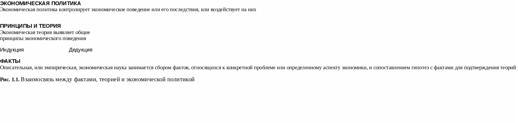Нормативная экономика рекомендует действовать, опираясь на субъективные оценочные суждения людей относительно того, какой должна быть экономика. На основании выводов и рекомендаций, сформулированных нормативной экономикой, строится система мероприятий государства в области общественного производства, распределения, обмена и потребления благ, направленная на повышение общественного благосостояния. Эта система мероприятий называется экономической политикой. Экономическая политика — целенаправленная система мероприятий государства и фирмы в области производства, распределения, обмена и потребления благ. Государственная экономическая политика призвана отражать интересы общества, всех его социальных групп и направлена на укрепление национальной экономики. Экономическая политика занимается нахождением вариантов решения экономических проблем и приведением в действие их механизмов. Политики, пользуясь экономической теорией, должны считаться также с культурным, социальным, правовым и политическим аспектами решаемой проблемы, если хотят, чтобы принимаемые ими решения были успешными. Осуществление задач экономической политики может привести к изменению экономической системы, ее совершенствованию или разрушению. 1.4. Функции экономической теории Вопрос о функциях экономической теории – это вопрос о границах ее использования. В экономической теории выделяют методологическую и познавательную функции. Методологическая функция заключается в том, что экономическая теория является методологическим фундаментом целого комплекса наук: отраслевые науки (экономика торгового дела, промышленности, транспорта, строительства, торговли); функциональные науки (бухгалтерский учет, управленческий учет, финансы, кредит, маркетинг, менеджмент, прогнозирование); межотраслевые науки (экономическая география, демография, экономическая статистика); историко-экономические науки (экономическая история, история экономических учений); Познавательная функция состоит в том, что установленные экономической теорией законы функционирования экономических систем могут использоваться для познания окружающего мира, в том числе и для целей прогнозирования. 1.5 Методология экономической теории Методология – это наука о методе. Метод не может быть произвольным, он должен соответствовать особенностям предмета. Таким образом, он является производным от предмета. Отличительная особенность метода экономической теории по сравнению с естественными науками проистекает из специфики экономических процессов. Каждый из них – социальное явление, и поэтому экономические закономерности всегда носят вероятностный характер. Например, если второй закон Ньютона действует применительно ко всем объектам материальной природы, то такой фундаментальный экономический закон, как закон спроса, действует только при определенных допущениях, при так называемых «прочих равных условиях». Методология исследования экономической теории представляет собой систему, состоящую из двух основных частей: 1) теоретико-познавательные категории, наиболее общие ключевые понятия экономической теории; 2) научный инструментарий, то есть совокупность общих и локальных методов исследования. К числу основных теоретико-познавательных категорий экономической теории от