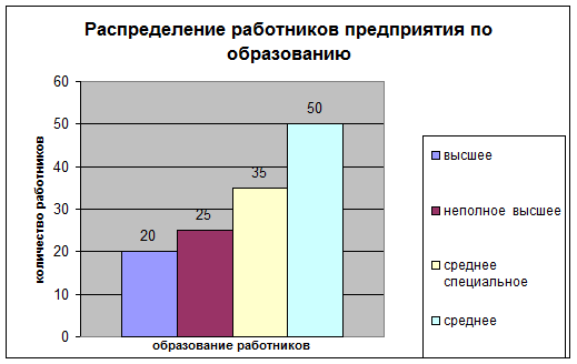 Рис. 2 Распределение работников предприятия по образованию. Круговая диаграмма.