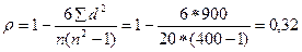 n – число размеров признака (число пар) (20) d – разность между рангами в двух рядах. Для его расчета используем данные из следующей таблицы: Таблица 4.