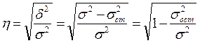 где Тогда Изменение значения η объясняется влиянием факторного признака. В основе расчёта корреляционного отношения лежит правило сложения дисперсий, то есть