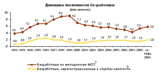 Уровень безработицы, исчисленный как отношение численности безработных к численности экономически активного населения, в октябре 2009г. составил 7,7%.