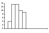 В нашем примере гистограмма будет такой же, как на рис. 11. Неравные интервалы группировки. Предположим, что вместо двух интервалов (3-5 и 5-7) стал один. Интервал стал шире в два раза, а высота стала не 27 а 13,5, с тем, чтобы площадь прямоугольника не менялась. Высоту прямоугольника можно определить по формуле - n/h, n - частоты попадания (27), а h - количество интервалов (2). Таблица 4.3