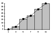 Рис. 11. На рисунке откладываются прямоугольники с высотой, прямо пропорциональной частоте данного интервала. Наибольшее число рабочих имеет стаж работы от 5 до 7 лет. Открытые крайние интервалы группировки. Предположим, что первый и последний интервалы открытые. В этих случаях используется стандартный прием. Условно ширина первого открытого интервала принимается равной ширине следующего интервала. Ширина последнего принимается равной ширине предыдущего. Таблица 4.2