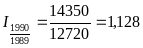 Требуется рассчитать индексы физического объёма продукции с постоянными весами. Индексы с постоянной базой (базисные): Индексы с переменной базой (цепные): Убедимся, что произведение цепных индексов равно базисному: 1,126 * 1,128 = 1,27 Если индексы цен, себестоимости и производительности труда имеют в качестве весов количество продукции отчётного периода, то эти индексы образуют индексные ряды с переменными весами, поскольку в каждом отдельном индексе отчётный период изменяется. Индексы с переменными весами не подчиняются правилу, согласно которому произведение цепных индексов равно базисному. Пример. Имеются данные об объёме производства и себестоимости продукции: Таблица 3.