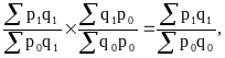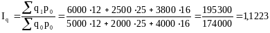 Рассчитать индексы себестоимости с переменными весами. Перемножив цепные индексы, получим: 0,989 * 0, 963 = 0, 9524 Рассчитаем базисный индекс III квартала: Как видим, расхождение есть, но оно проявляется только в четвёртом знаке после запятой. Величина расхождения не многим более 0,01%. Средние индексы. Всякий агрегатный индекс может быть преобразован в средний арифметический из индивидуальных индексов. Для этого индексируемая величина отчётного периода, стоящая в числителе агрегатного индекса, заменяется произведением индивидуального индекса на индексируемую величину базисного периода. Так, индивидуальный индекс цен равен Следовательно, преобразование агрегатного индекса цен в средний арифметический имеет вид: Аналогично индекс себестоимости равен Аналогично индекс физического объёма продукции (товарооборота) равен Пример. Определить средний арифметический индекс физического объёма продукции. Таблица 4.