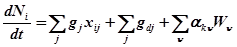 Рис.5. Схема потоков в системе с химическими превращениями